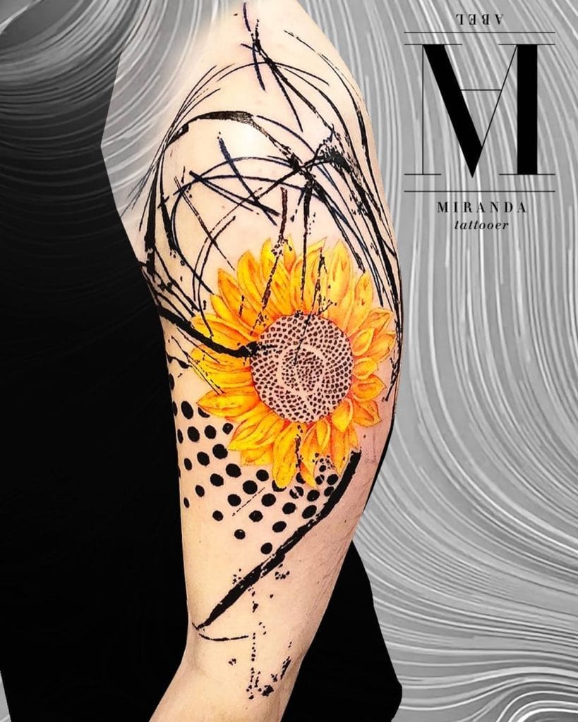 Dentro del estilo acuarela, muchos clientes optan por añadir elementos sketch. El sketch tattoo se basa en las líneas sueltas, los trazos del boceto, como si el tatuaje estuviera aún en construcción. Se busca transmitir dinamismo, proceso, y espontaneidad.