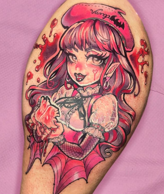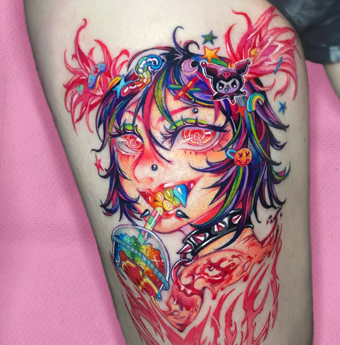 Hoy en día, tatúa tanto a nivel nacional como internacional, trabajando en varios estilos: desde anime y fullcolor hasta realismo con toques de neón. Si buscas un tatuaje personalizado y único, no dudes en contactar con ella