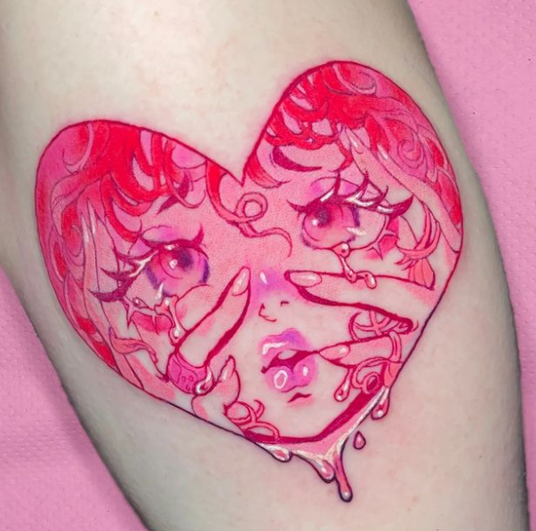 Paleta de colores, este es otro aspecto que distingue a los tatuajes anime, para empezar, no existen limitaciones en cuanto al color y todos ellos son bastante fuertes, no existen los tonos opacos dentro de los tatuajes anime.