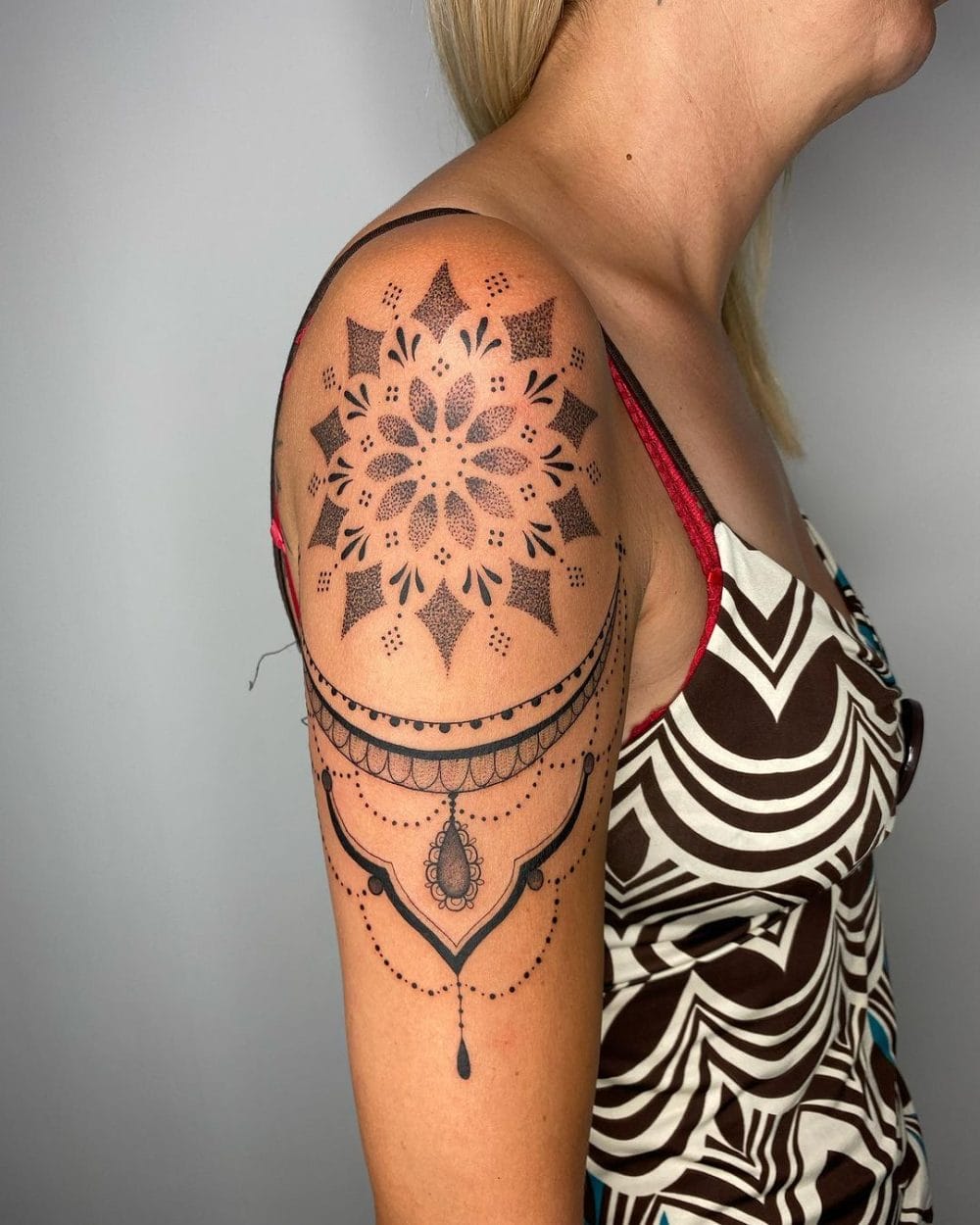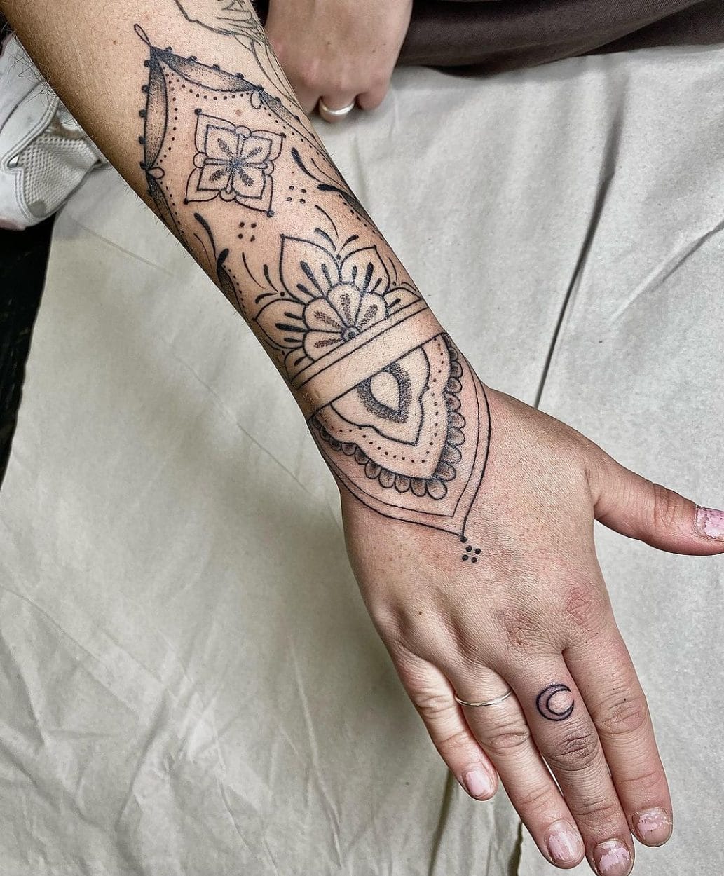 Este estilo de tatuajes suele estar relacionado con estilos como el geométrico. Aunque su origen es religioso y misterioso, en la actualidad muchas personas lo emplean como una opción para resaltar o embellecer una parte de su cuerpo al ser una hermosa muestra de arte decorativo.